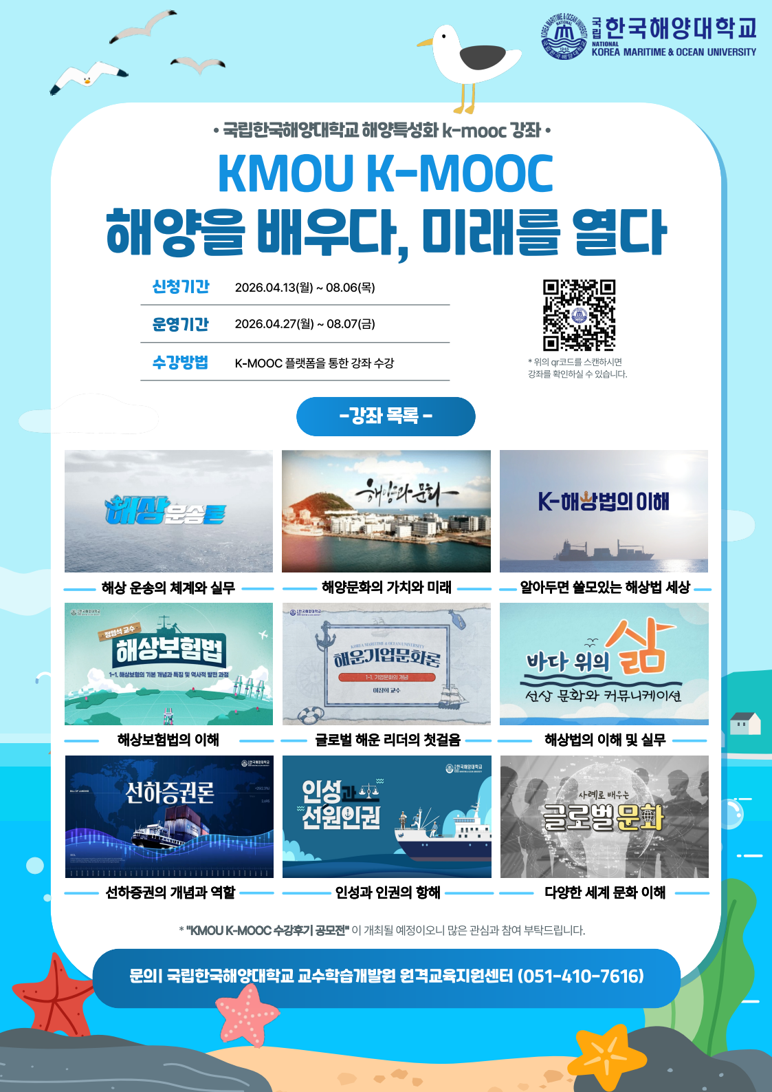다. 문의: 국립한국해양대학교 원격교육지원센터(051-410-7616, kmouctl-e@kmou.ac.kr)