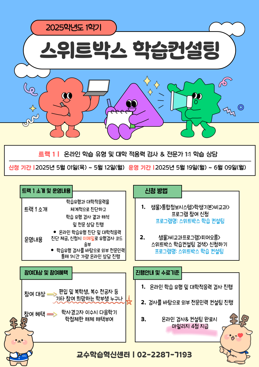 서울 [비교과] [교수학습혁신센터지원팀(서울)]2025학년도 2학기 스위트박스 학습컨설팅 모집 안내_트랙1 -